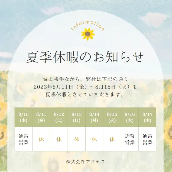 夏季休暇のお知らせ