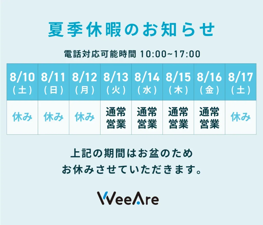 平素は格別のご愛顧を賜り、誠にありがとうございます。誠に勝手ながら、弊社では下記の期間、夏季休暇とさせて頂きます。