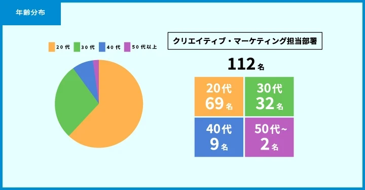 クリエイティブ・マーケティング担当の年齢構成は以下の通りです。