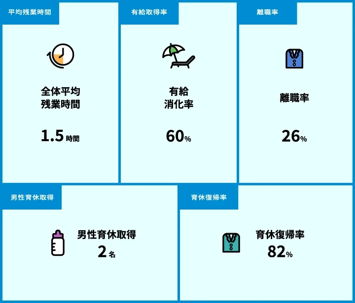 当社の全体平均残業時間は1.5時間と、業界内でも比較的短い水準です。ワークライフバランスを意識した働き方を推奨しており、効率的な業務遂行を重視しています。